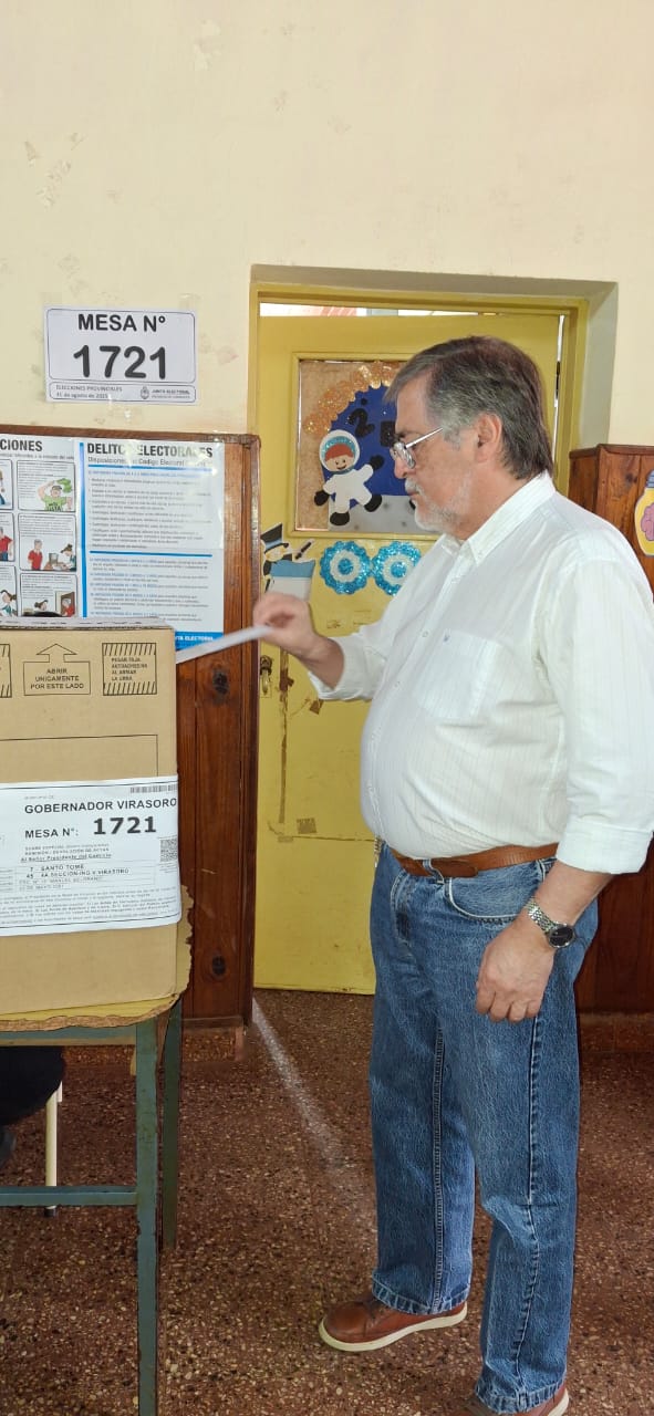 Tras emitir su voto en la escuela N° 15 Manuel Belgrano de Gobernador Virasoro, el candidato a senador provincial Enrique Vaz Torres fue claro y contundente:  “Hoy el correntino elige qué camino quiere para la Provincia”.