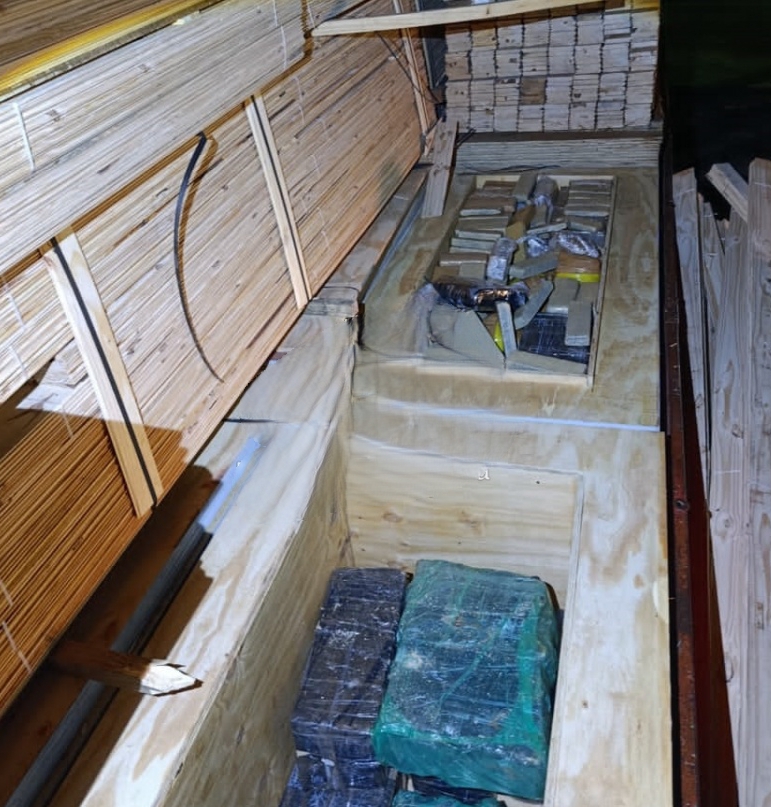 A simple vista, el transporte de cargas generales llevaba madera en placas desde Santo Tomé (Corrientes) hacia Buenos Aires. Pero, el can detector de narcóticos "Barak" alertó a los uniformados marcando la presencia de estupefacientes en el sector de carga del rodado.