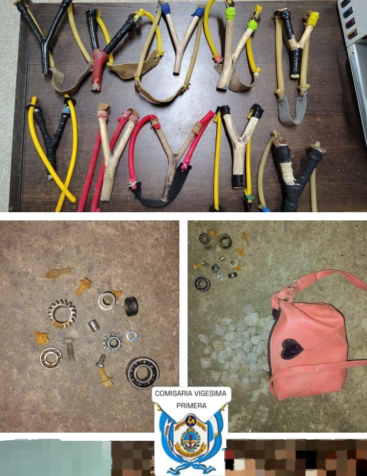Personal de Investigaciones de la Comisaría 21 Urbana, en la jornada de hoy, en momentos en que realizaban sus labores de prevención y recorridas, finalmente demoraron a varios menores de edad que circulaban en grupos causando molestias y vandalismo, secuestrándose gran cantidad de gomeras y otros elementos.