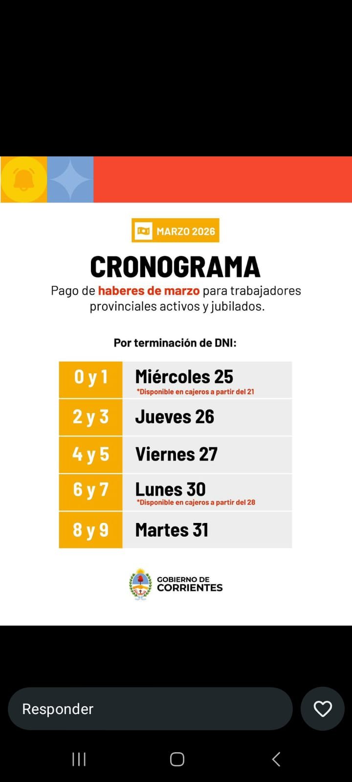 Desde el miércoles 25 de abona el pago a estatales